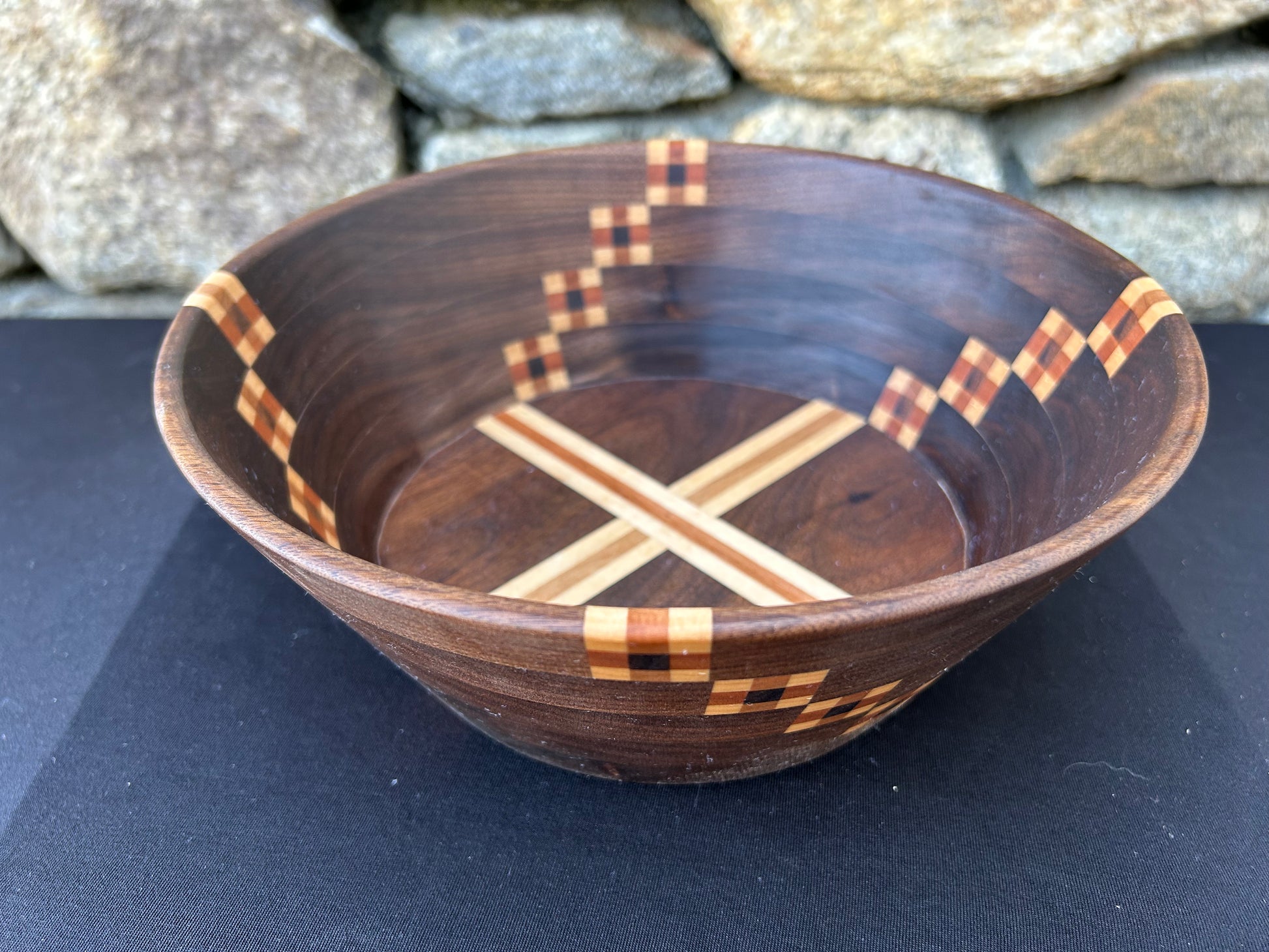 Unique functional art bowl that has as many uses as the imagination can summon. Unlike many other bowls, this one has never seen a lathe. Several complex processing steps are involved, incorporating the skillful use of numerous shop tools, to create this pleasing step up design.