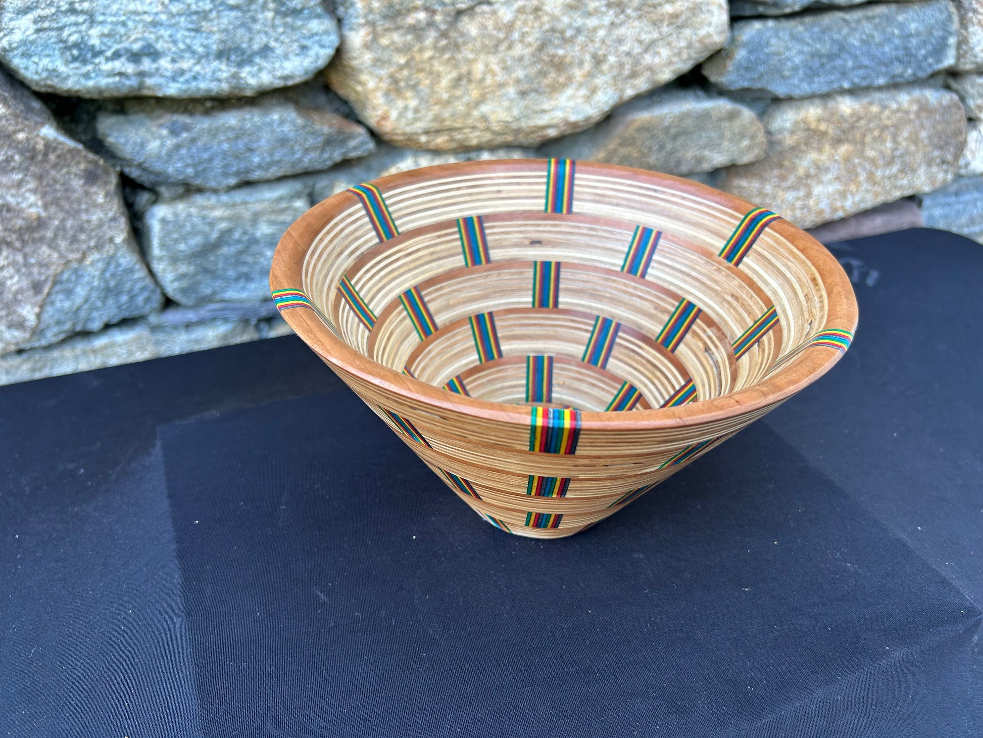 Baltic Birch and Multi-color Spectra-ply Basket Weave Bowl